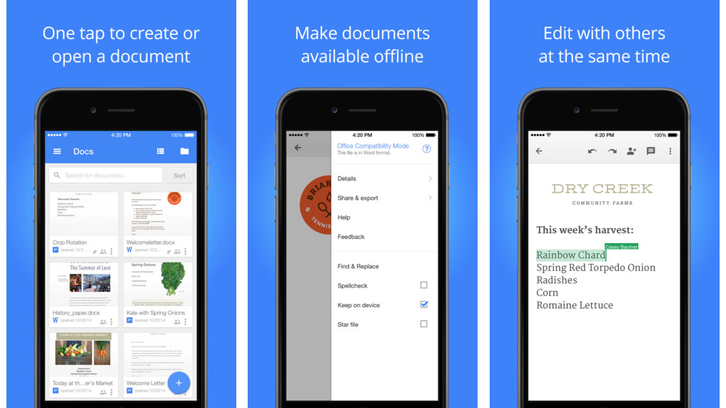 Det er all funksjonalitet her som du forventer fra Google Docs på en laptop. Du kan redigere et dokument på farten, samarbeide med andre forfattere og kan være lett å miste fremdrift, som endringer blir tatt automatisk lagret.
